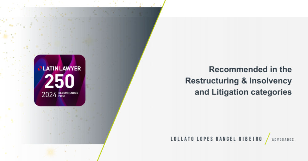 With enthusiasm, we share the recognition of our firm in the Latin Lawyer 250 ranking. We were recommended in the Restructuring & Insolvency and Litigation categories. This result reflects our search for solutions to the needs of our customers. According to the publication, we are one of the main firms in Latin America due to our excellent commitment and legal knowledge.