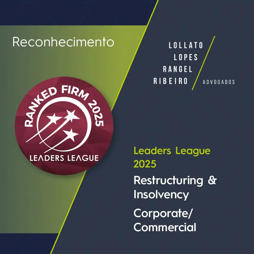 Lollato Lopes Rangel Ribeiro Advogados has been highlighted among the leading law firms in Brazil in the area of Restructuring and Insolvency in a new ranking released yesterday (16/10) by the renowned publication Leaders League. We were also recognized in the Corporate/Business area in the South region.