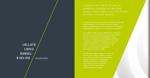 Fonte: GlobalRestructuringReview. Acessado em 25/10/2019. History of the practice The firm now called Lollato Lopes...