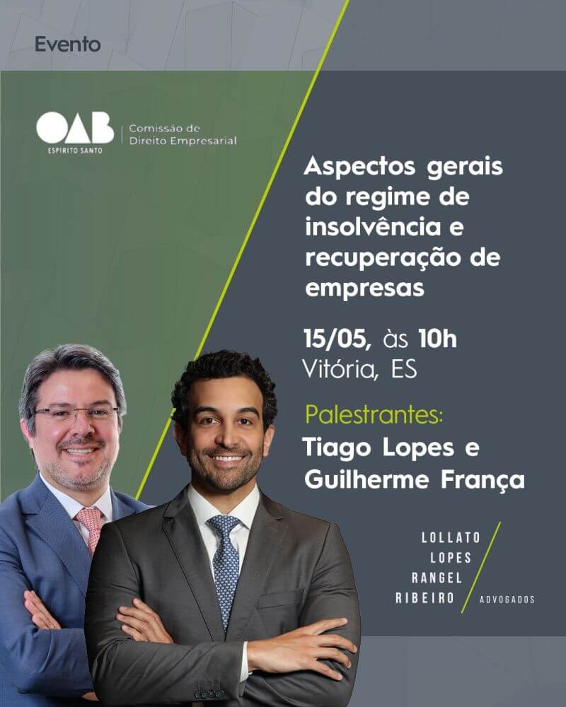 Tiago Schreiner Lopes e Guilherme França palestram na sede da OAB Espírito Santo na próxima quinta-feira, 15/05, a partir das 10h.