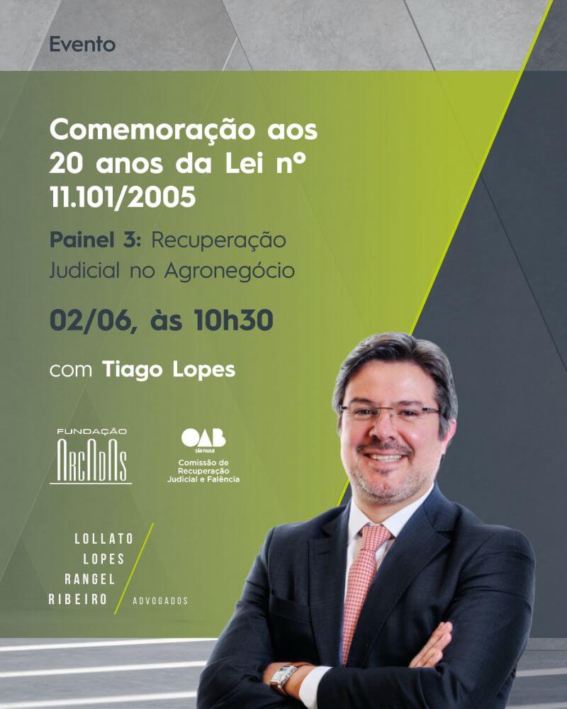 Na próxima segunda-feira, 02 de junho, Tiago Schreiner Lopes palestra no encontro que comemora os 20 anos da Lei nº 11.101/2005, marco na legislação brasileira sobre recuperação judicial e falência.