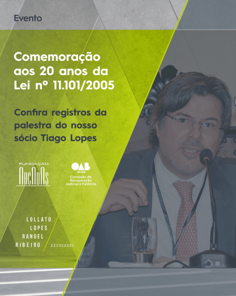 Tiago Schreiner Lopes palestrou, no último dia 02/06, em evento promovido pela Fundação Arcadas e a Comissão de Recuperação Judicial da OAB SP em celebração aos 20 anos da Lei nº 11.101/2005, marco na legislação brasileira sobre recuperação judicial e falência.