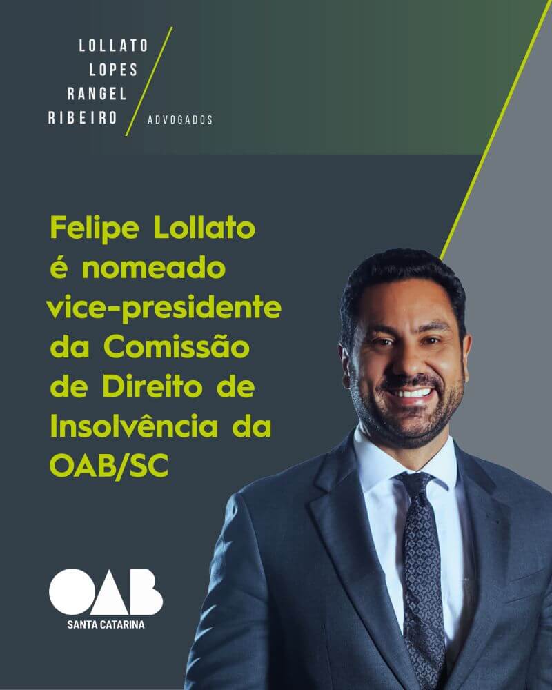Felipe Lollato assume atribuição junto à OAB Santa Catarina (OAB/SC) e se torna o vice-presidente da recém-criada Comissão de Direito de Insolvência da seccional.
