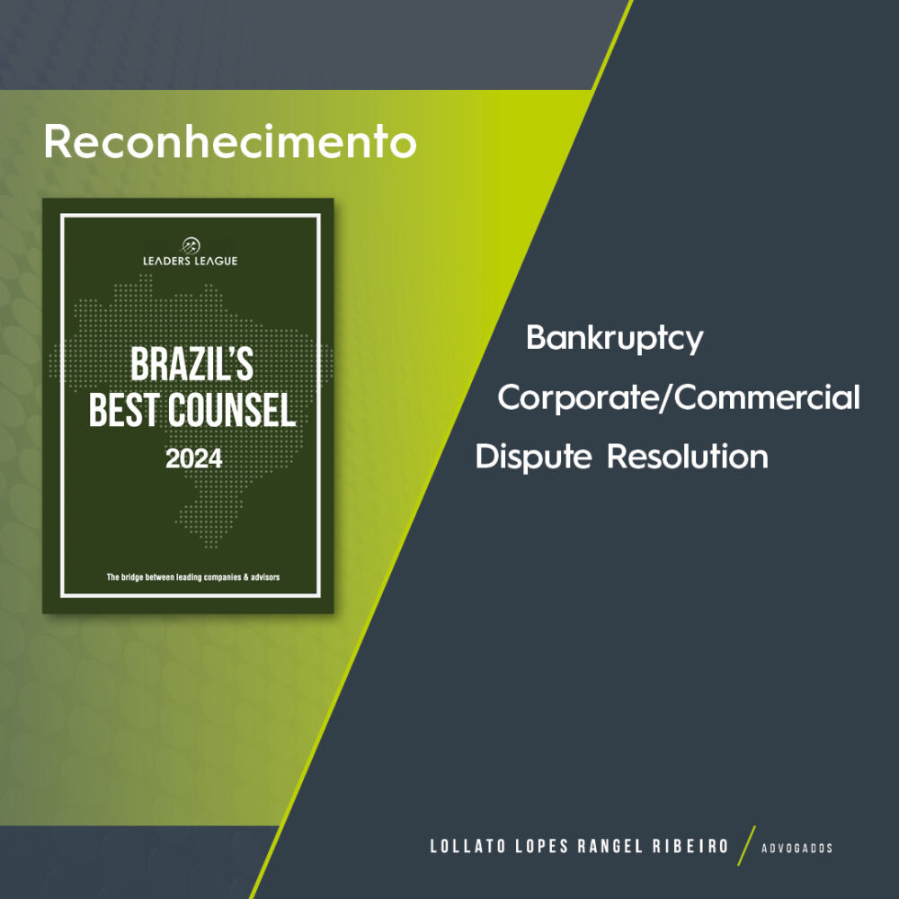 Lollato Advogados foi destacado pelo anuário Brazil’s Best Counsel 2024, organizado pela Leaders League, como uma das principais bancas do Brasil nas práticas de recuperação judicial, societário e contencioso.