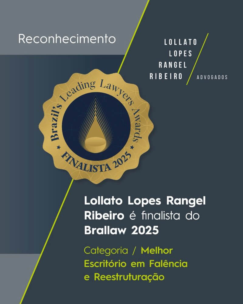 Lollato Lopes Rangel Ribeiro Advogados é finalista na caterogia melhor escritório do ano em Falências e Recuperação no Brazil’s Leading Lawyers Awards (Brallaw) 2025, premiação anual organizada pela Leaders League Brasil.