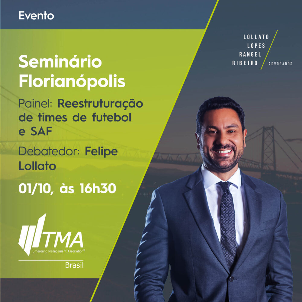 Felipe Lollato palestra no Seminário Florianópolis, encontro que acontece no próximo dia 1º de outubro e é promovido pela TMA Brasil. O evento aborda os principais temas da área de Reestruturação e Recuperação Judicial e conta com o apoio de nosso escritório.